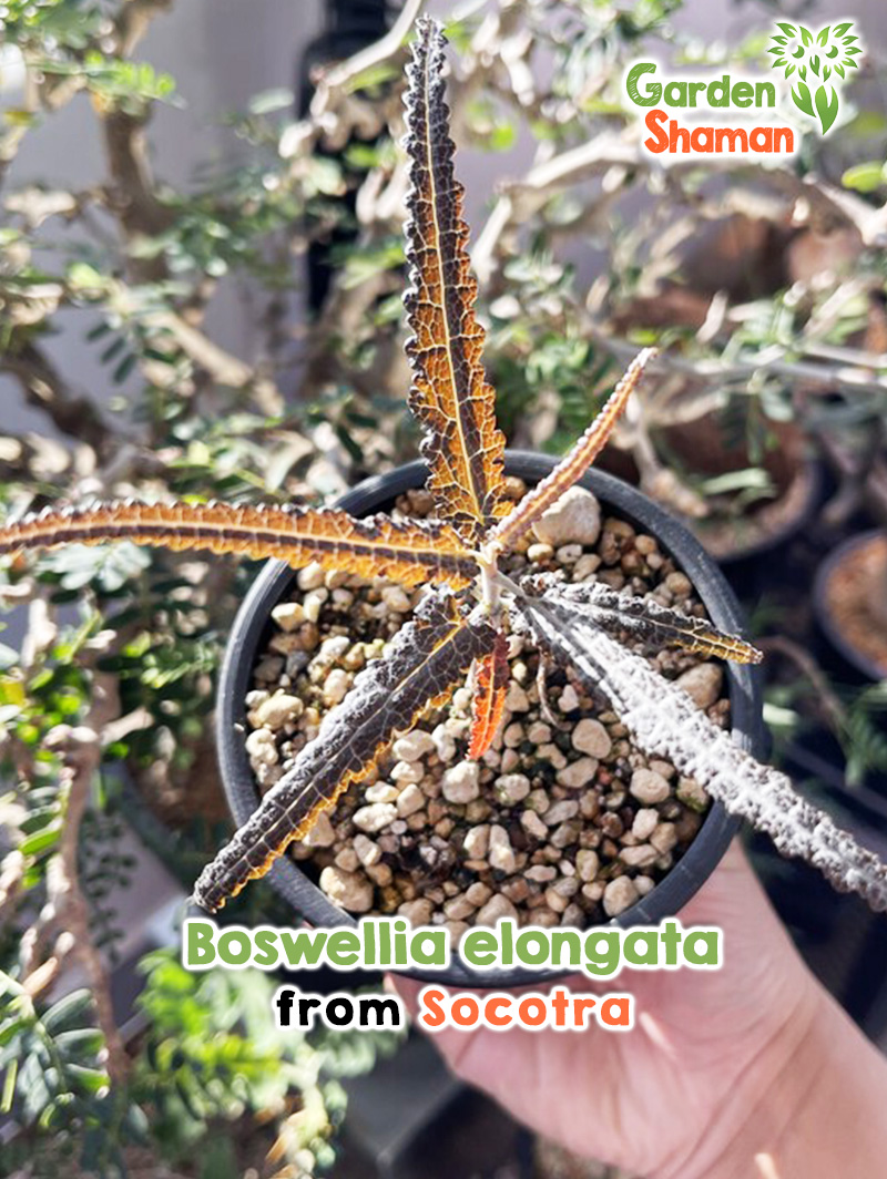 Boswellia elongata è il nome commerciale comune di una forma di Boswellia a foglia lunga e a crescita slanciata proveniente dalla regione araba sud-occidentale o dall'isola di Socotra. È caratterizzata da foglioline strette e allungate e da una crescita relativamente delicata ed elegante.